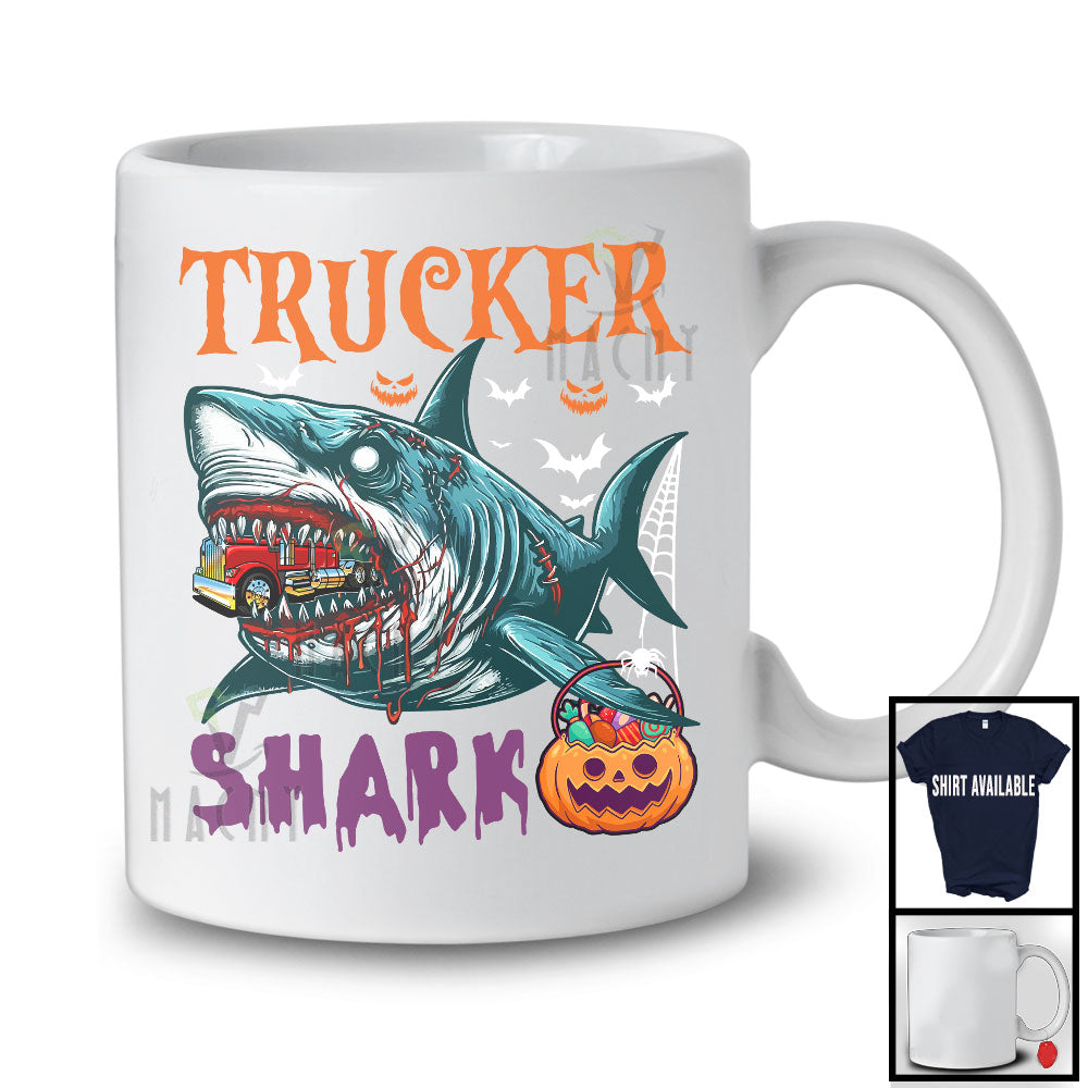 new MacnyStore - Trucker Shark, Scary Halloween Costume Pumpkin Zombie Shark, Proud Careers Group T-Shirt – Macnystore