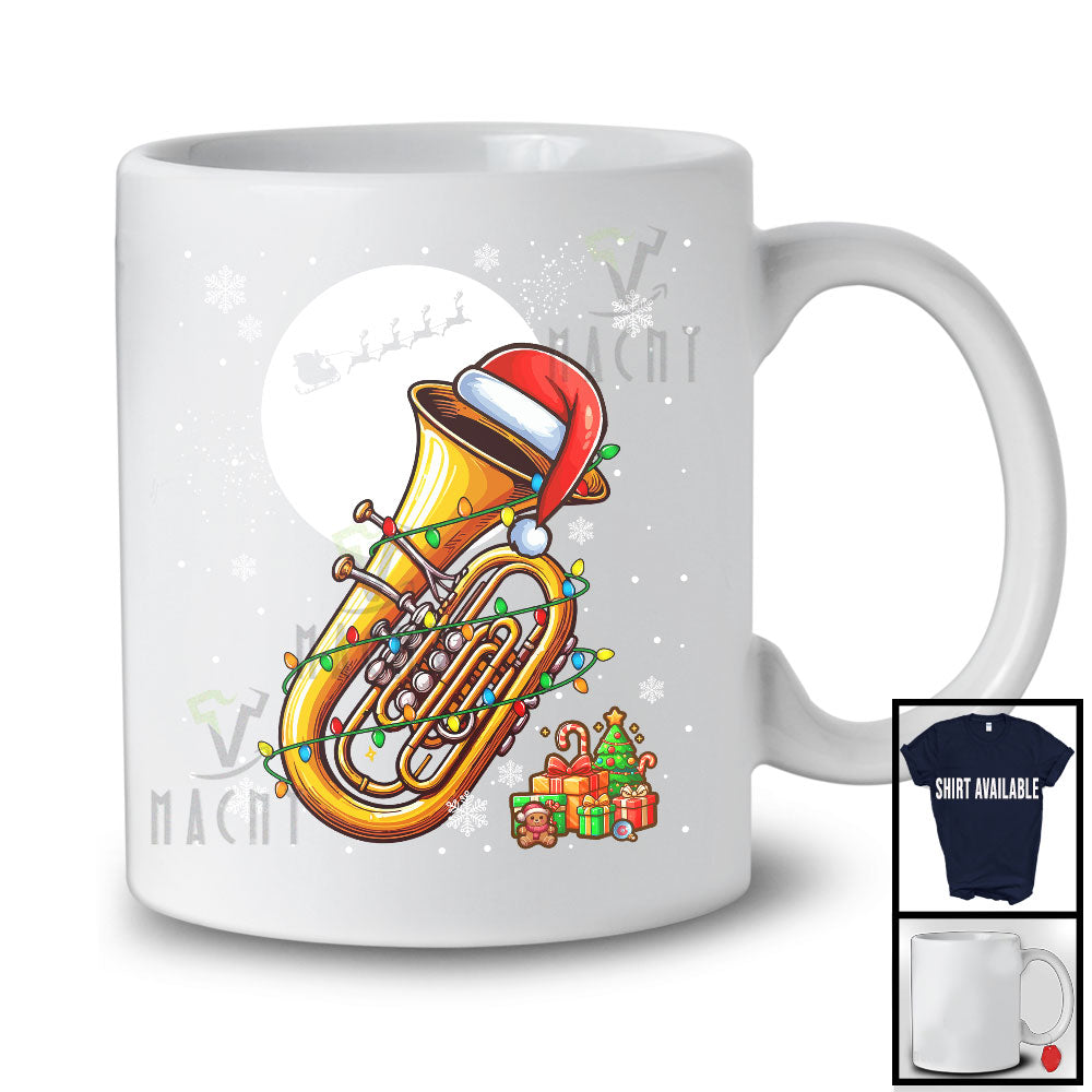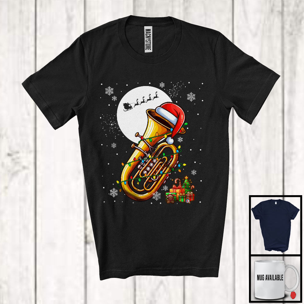 Tuba Santa; Amusing Christmas Lights Snowing Santa Tuba Player; Musical Instruments T-Shirt