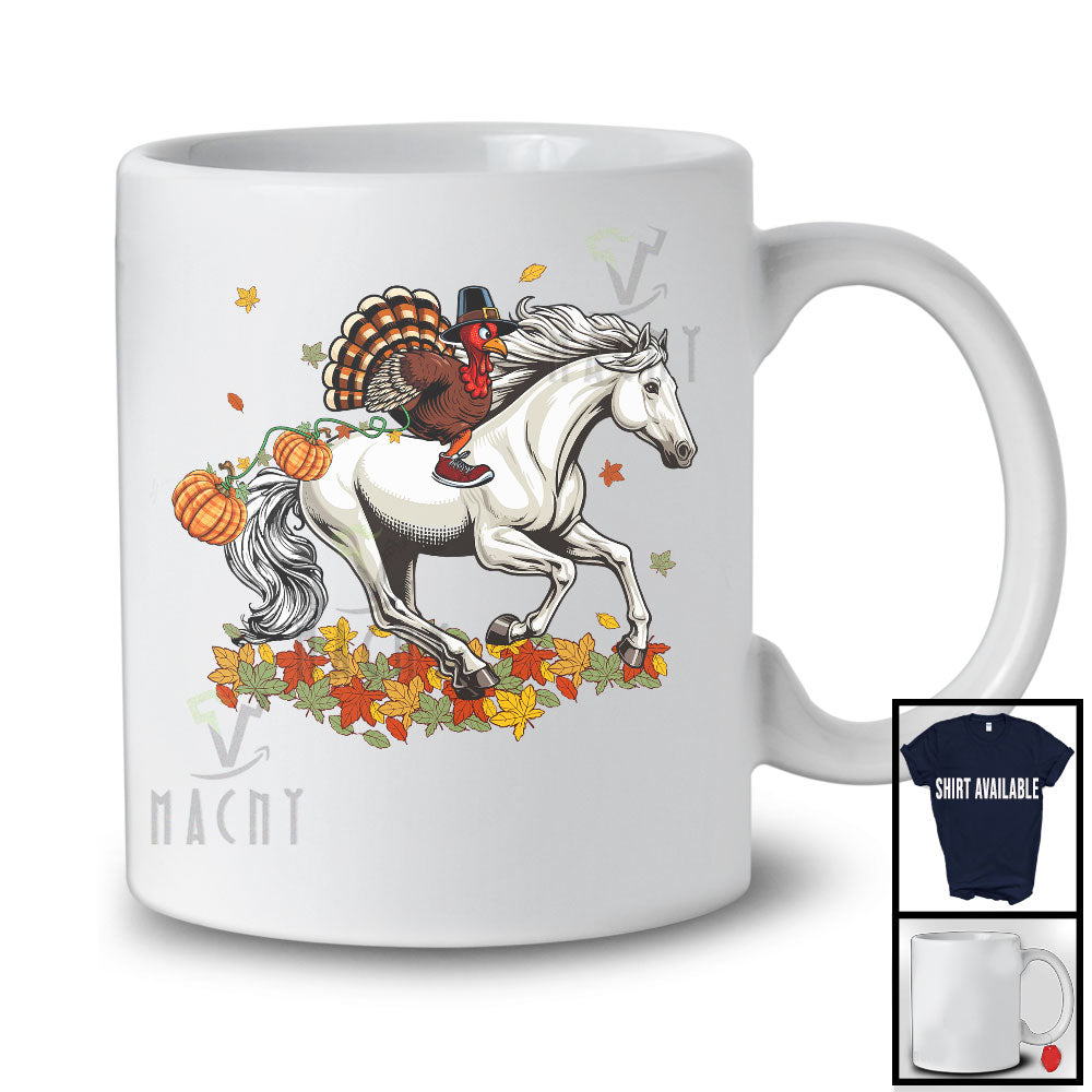 Turkey Riding Horse; Humorous Thanksgiving Autumn Leaves Animal; Pumpkin Family Group T-Shirt