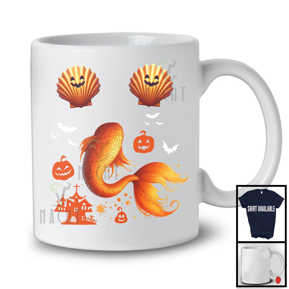 Two Seashell Mermaid Tail, Awesome Halloween Costume Mermaid Cosplay, Pumpkin Family T-Shirt