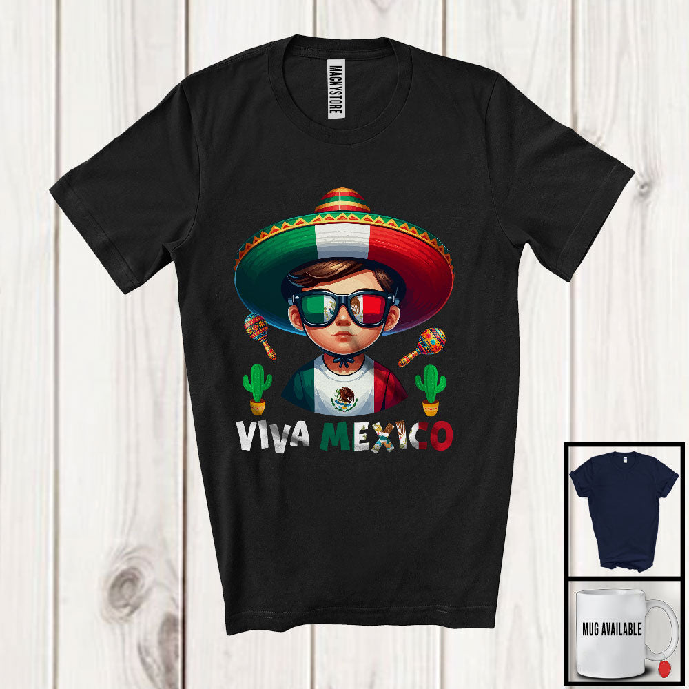The Viva Mexico; Awesome Independence Day Boy Mexican Flag Sunglasses Sombrero; Family T-Shirt destined to impress, and priced at only $12.95, for a limited time.