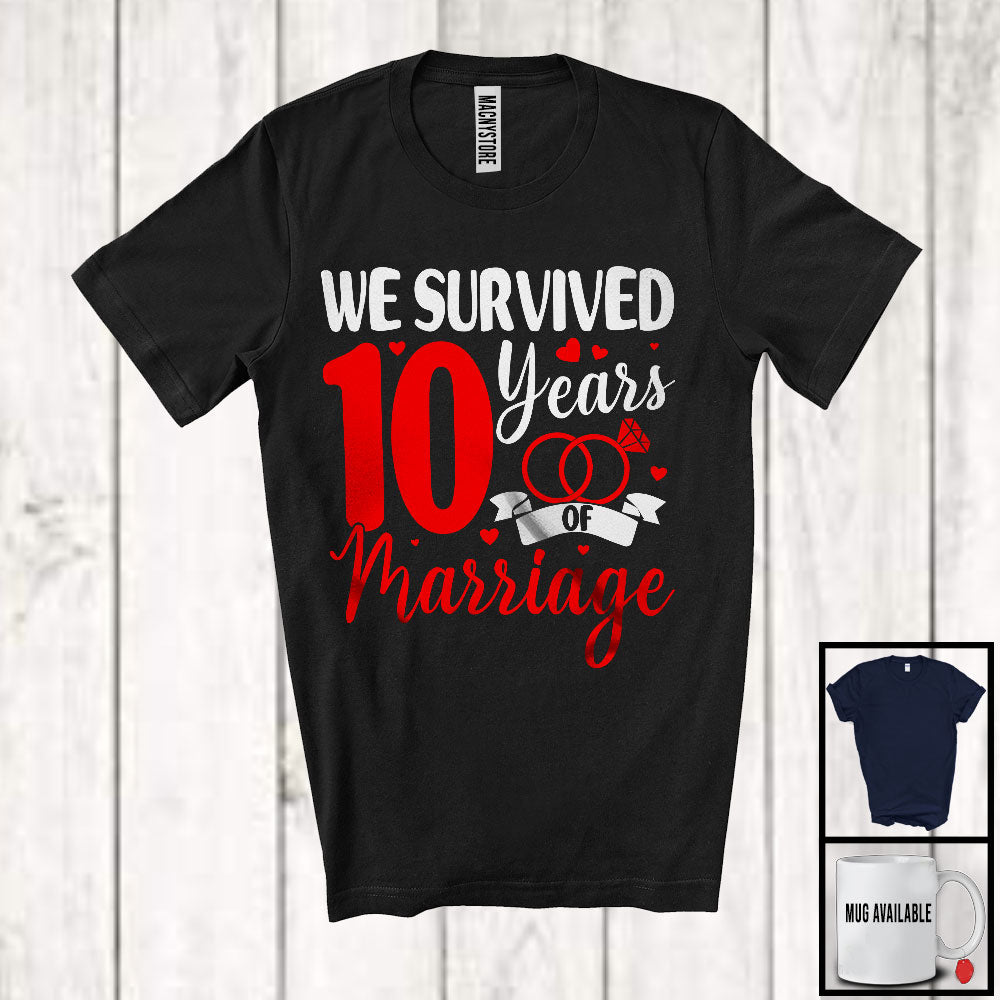 We Survived 10 Years Of Marriage, Humorous 10th Wedding Anniversary Rings, Couple Family T-Shirt