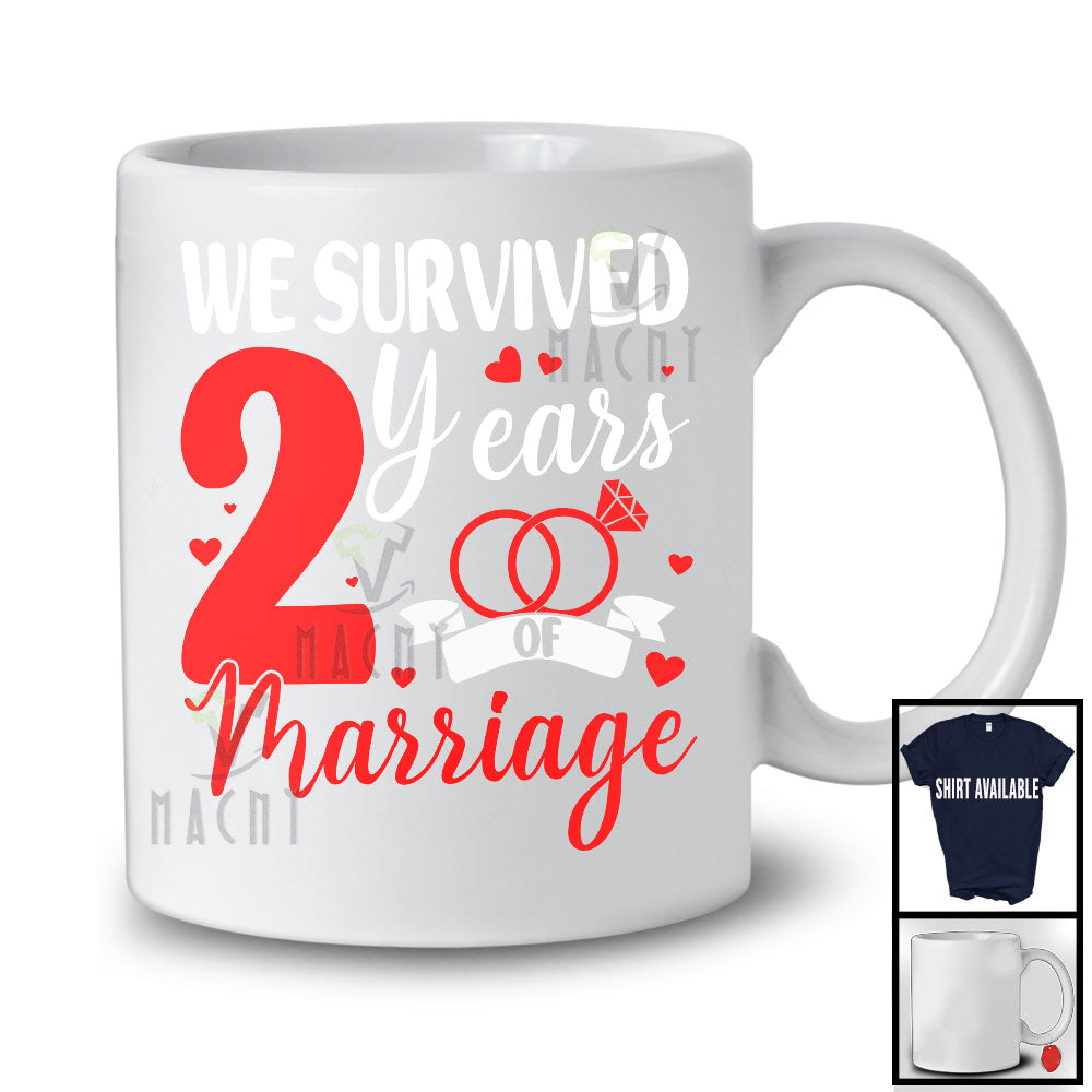 The We Survived 2 Years Of Marriage, Humorous 2nd Wedding Anniversary Rings, Couple Family T-Shirt destined to impress, and priced at only $12.95, for a limited time.