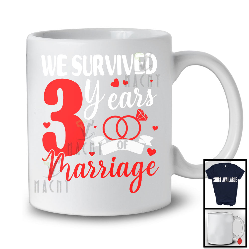 We Survived 3 Years Of Marriage, Humorous 3rd Wedding Anniversary Rings, Couple Family T-Shirt