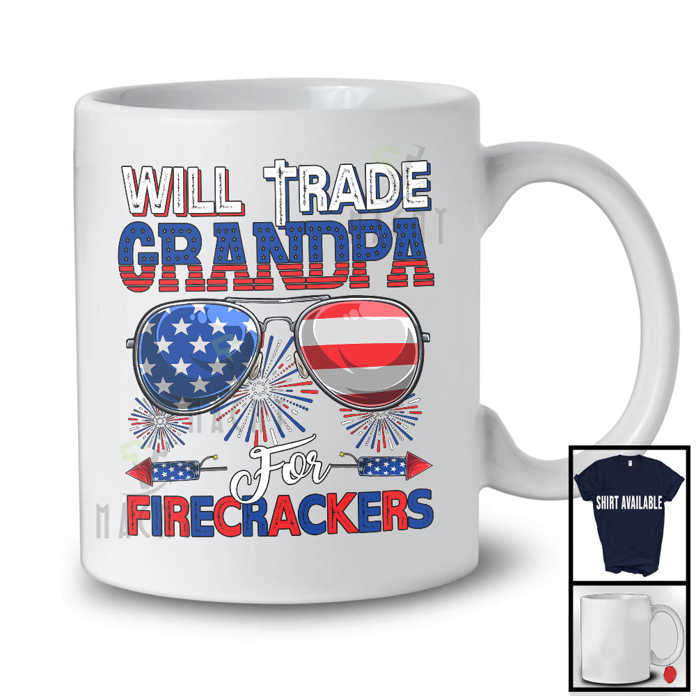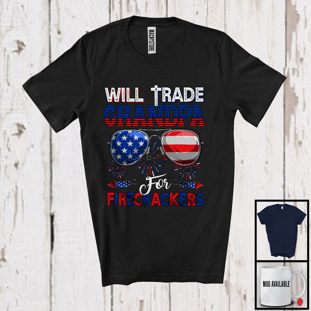 Will Trade Grandpa For Firecrackers, Cheerful 4th Of July American Flag Sunglasses, Patriotic Family T-Shirt