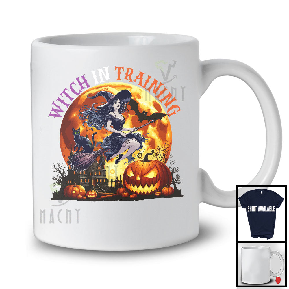 Witch In Training, Sarcastic Halloween Witch Lover Carved Pumpkin, Girls Women Family Group T-Shirt. This cotton t-shirt is a durable staple product with a classic fit. One of the most popular items, it has a relaxed style made for everyday and casual wear.