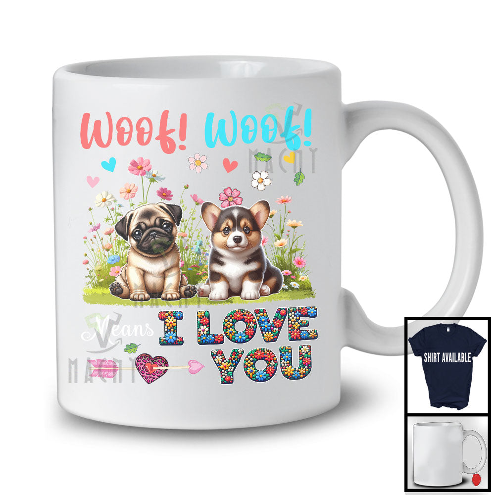 Woof Woof Means I Love You, Adorable Dogs Owner Lover Flowers, Matching Farmer Lover T-Shirt