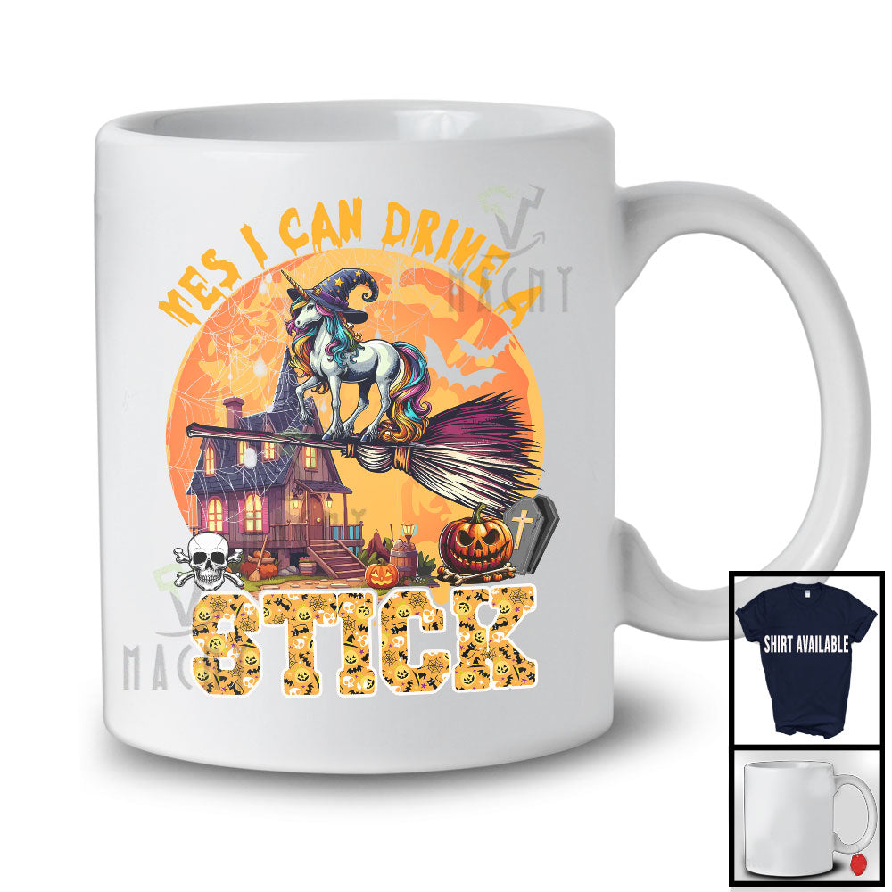 Yes I Can Drive A Stick, Awesome Halloween Costume Witch Unicorn Lover, Scary Moon Family T-Shirt