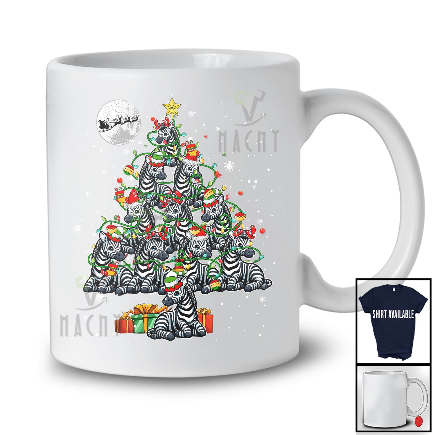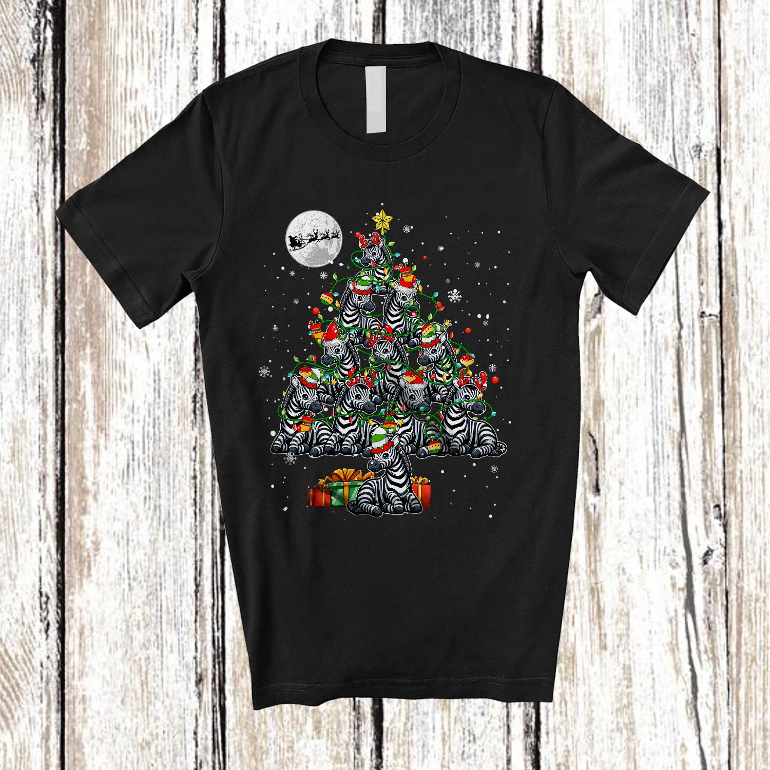 new MacnyStore - Zebra Christmas Tree Lights; Amazing X-mas Zebra Animal Lover; Snowing Family Group T-Shirt – Macnystore