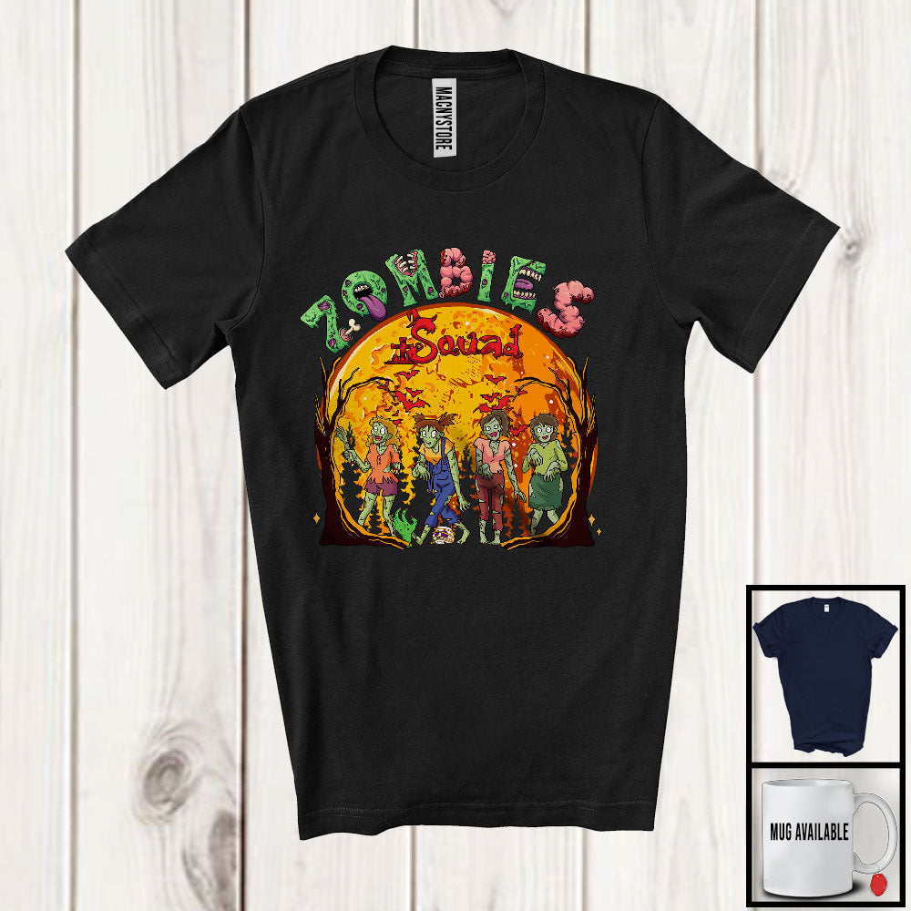 Zombies Squad; Creepy Halloween Costume Girl Zombies Squad Moon; Matching Family Group T-Shirt. This cotton t-shirt is a durable staple product with a classic fit. One of the most popular items, it has a relaxed style made for everyday and casual wear.