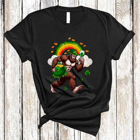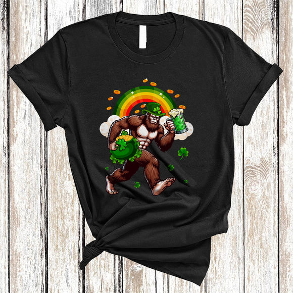 Bigfoot Drinking Beer With Gold Pot, Cheerful St. Patrick's Day Shamrock Bigfoot, Family Group T-Shirt