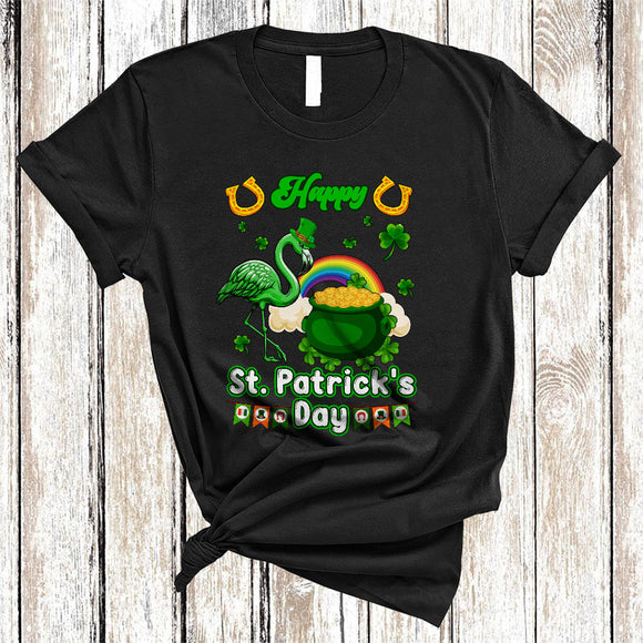 Happy St. Patrick's Day, Lovely Flamingo Animal Lover, Lucky Shamrocks Rainbow Family Group T-Shirt