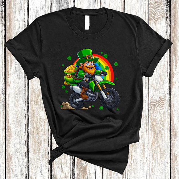Leprechaun Riding Dirt Bike, Wonderful St. Patrick's Day Lucky Shamrock Rainbow, Family Group T-Shirt