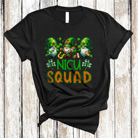 NICU Squad, Happy St. Patrick's Day Three Gnomes Gnomies Nursing Plaid Shamrock, Nurse Group T-Shirt