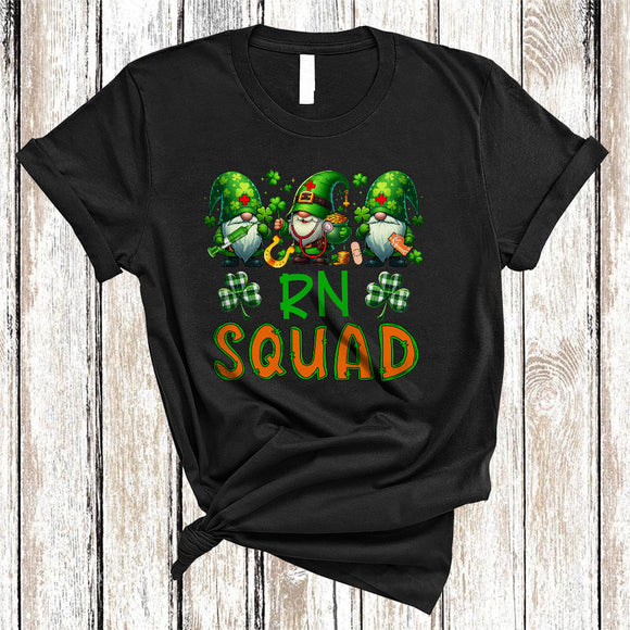 RN Squad, Happy St. Patrick's Day Three Gnomes Gnomies Nursing Plaid Shamrock, Nurse Group T-Shirt