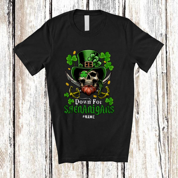 Personalized Down For Shenanigans; Scary St. Patrick's Day Custom Name Skull Pirate Leprechaun T-Shirt
