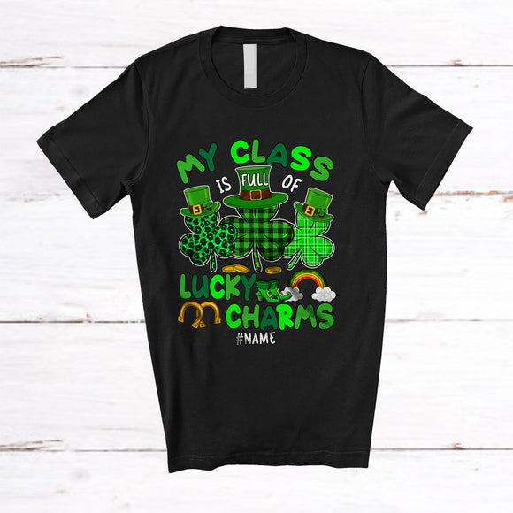 Personalized My Class Is Full Of Lucky Charms; Joyful St. Patrick's Day Custom Name Shamrocks Teacher T-Shirt