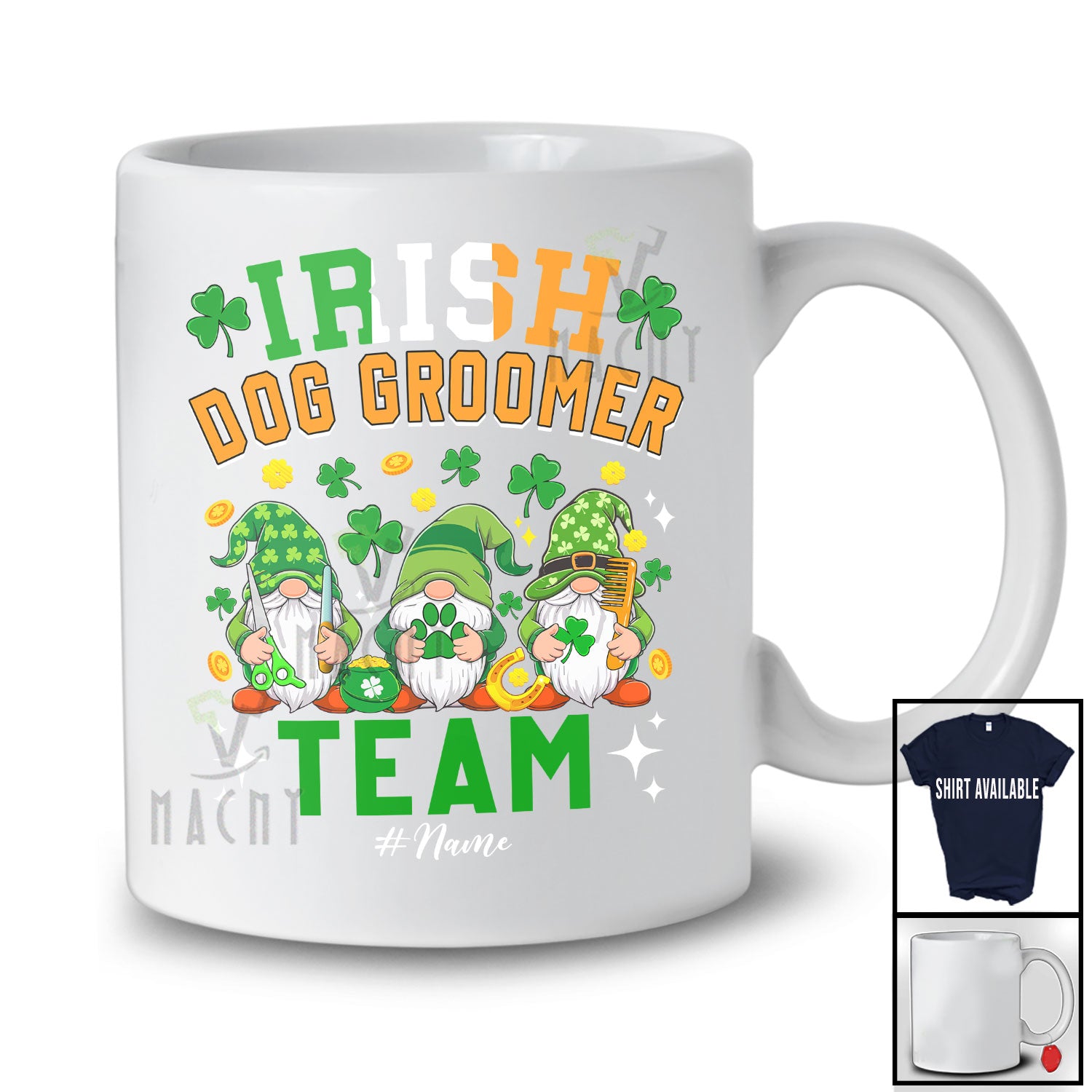 Personalized Custom Name Irish Dog Groomer Team; Amazing St. Patrick's Day Three Gnomes T-Shirt. This cotton t-shirt is a durable staple product with a classic fit. One of the most popular items, it has a relaxed style made for everyday and casual wear.