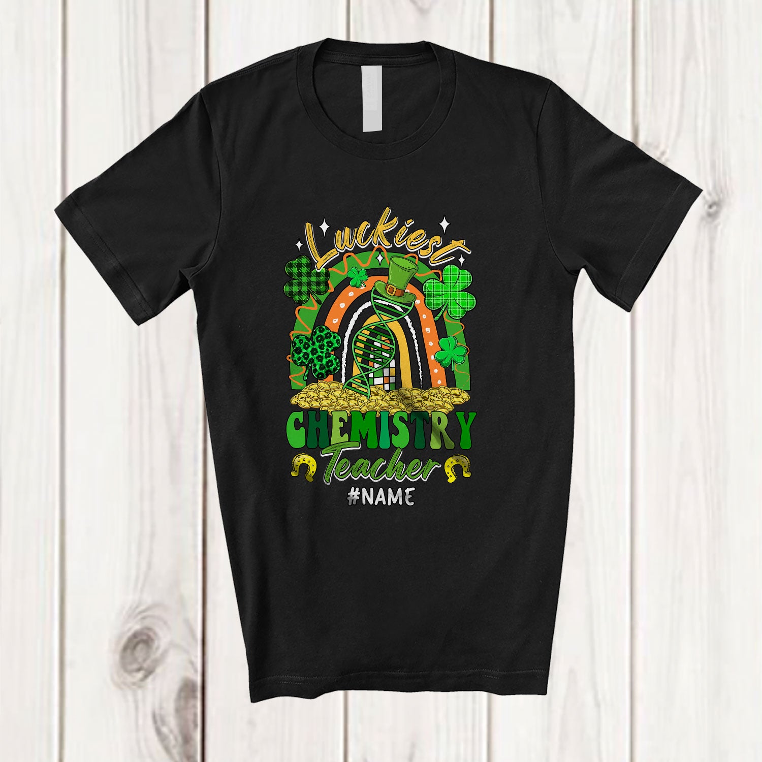Personalized Custom Name Luckiest Chemistry Teacher; Joyful St. Patrick's Day Shamrock Rainbow T-Shirt