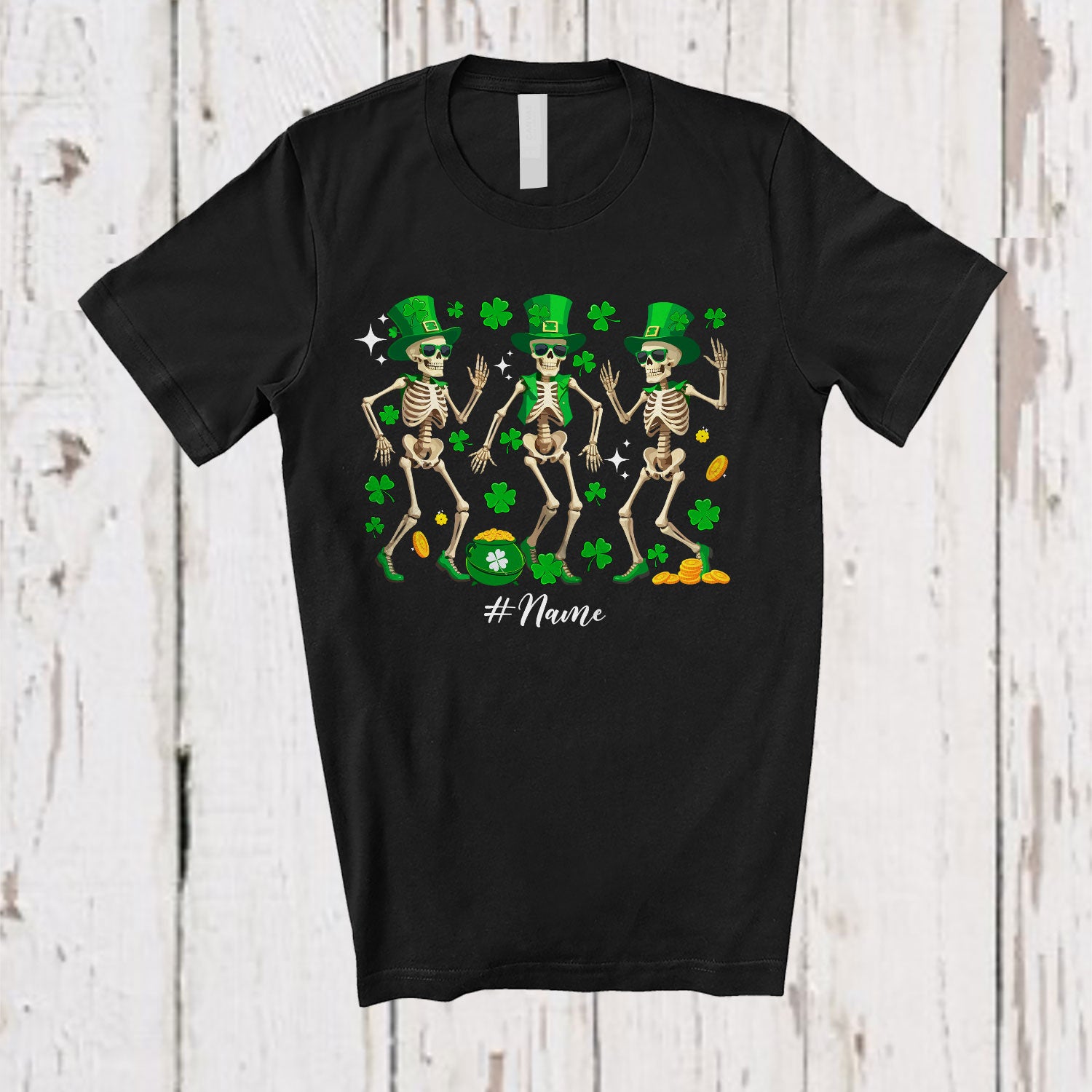 Personalized Custom Name Three Skeletons Dancing; Joyful St. Patrick's Day Shamrock; Family T-Shirt