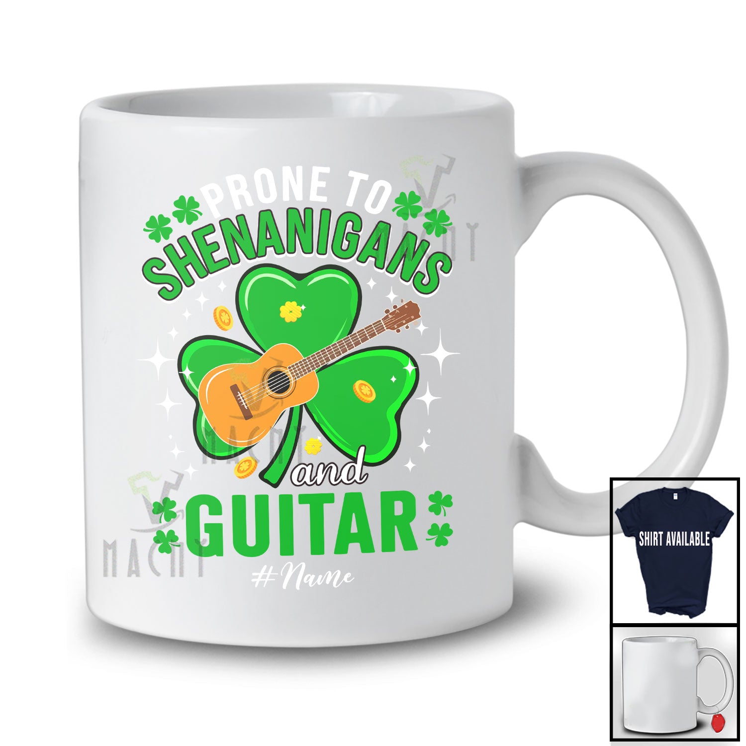 • Personalized Prone To Shenanigans Guitar; Lovely St. Patrick's Day Custom Name Guitarist T-Shirt. This cotton t-shirt is a durable staple product with a classic fit. One of the most popular items, it has a relaxed style made for everyday and casual wear.