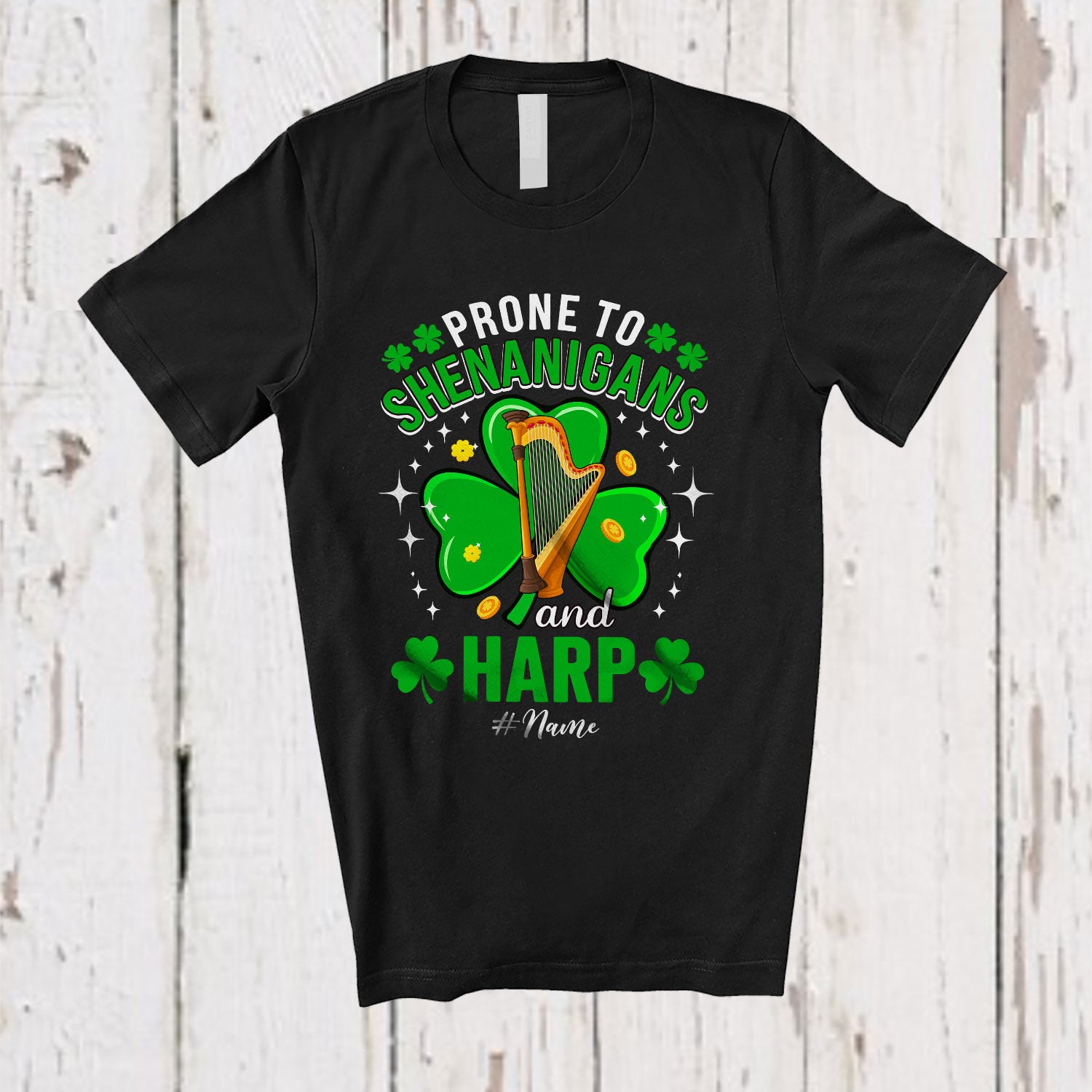 This Personalized Prone To Shenanigans Harp; Lovely St. Patrick's Day Custom Name Harp Player T-Shirt is great idea gift for your family, friends in this birthday, christmas, mother's day, father's day, patrick's day or any holiday.