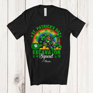 Personalized St. Patrick's Day Excavator Squad; Joyful Leprechaun Custom Name Excavator Driver T-Shirt
