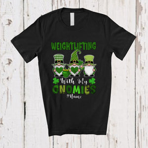 Personalized Weightlifting With My Gnomies; Lovely St. Patrick's Day Custom Name Three Green Gnomes T-Shirt