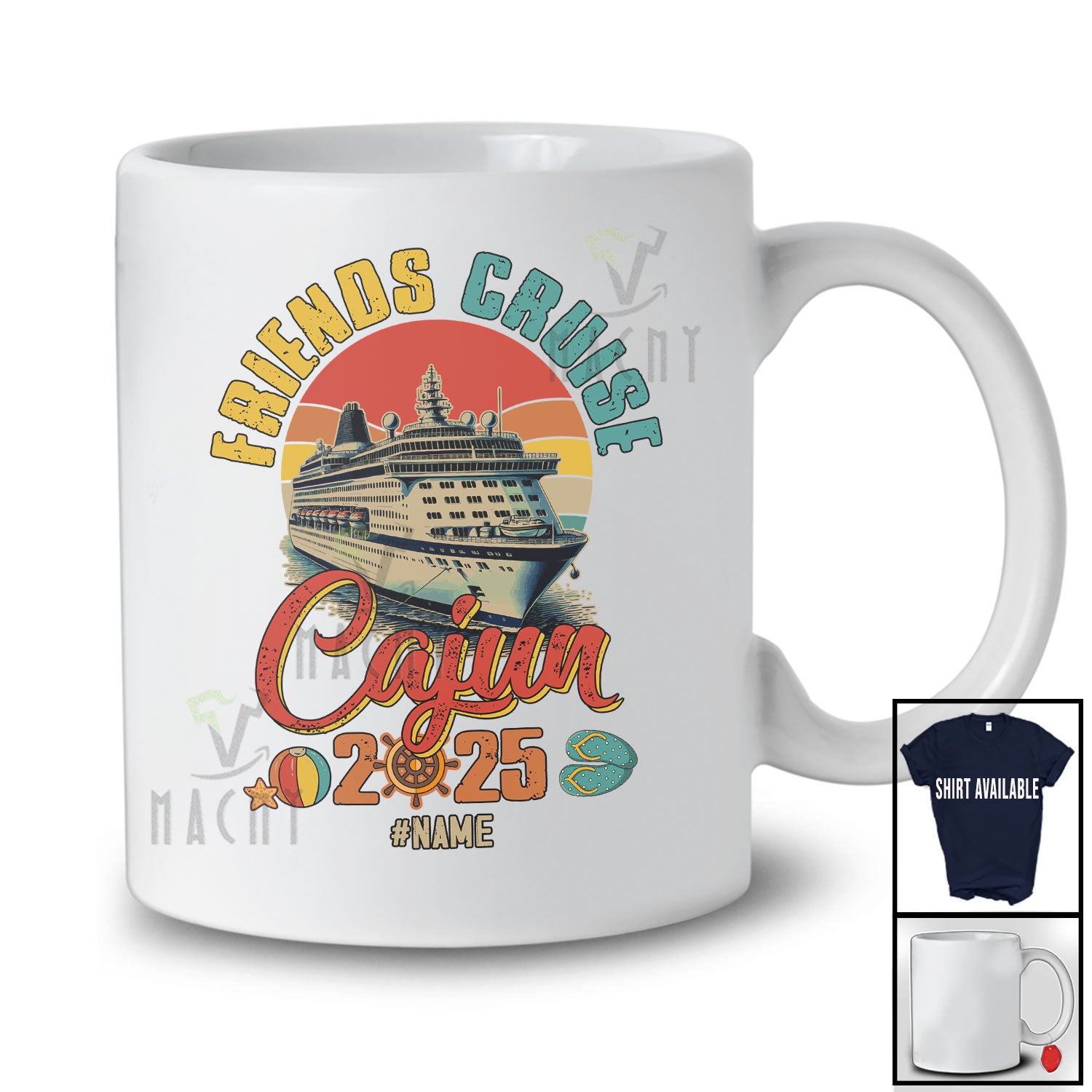 The Personalized Custom Name Friends Cruise Cajun 2025; Joyful Summer Vacation Vintage Retro T-Shirt destined to impress, and priced at only $12.95, for a limited time.