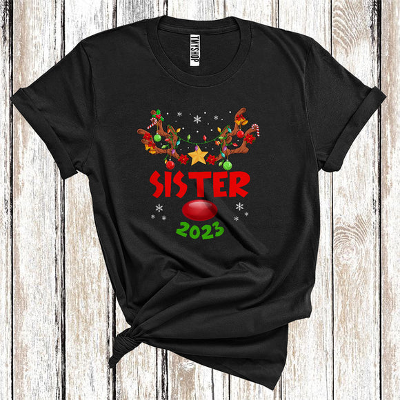 Sister Reindeer Face 2023 Xmas Lights Family Group Christmas T-Shirt