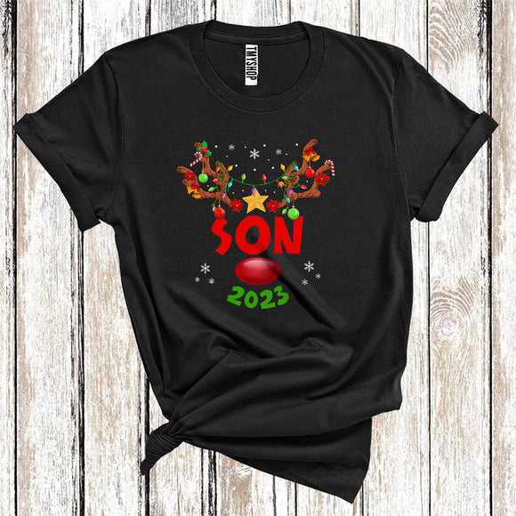 Son Reindeer Face 2023 Xmas Lights Family Group Christmas T-Shirt