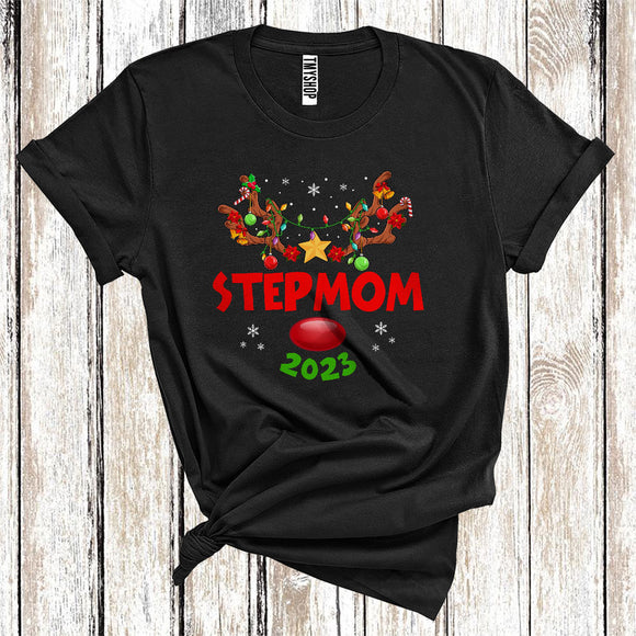 Stepmom Reindeer Face 2023 Xmas Lights Family Group Christmas T-Shirt