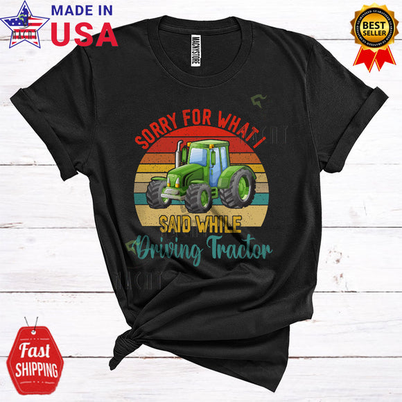 Vintage Retro Sorry For What I Said While Driving Tractor Funny Cool Tractor Driver Farmer Lover T-Shirt