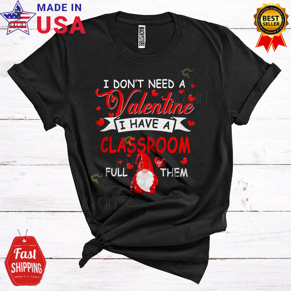 I Don't Need A Valentine I Have A Classroom Full Of Them Cute Funny Valentine's Day Teacher Gnome T-Shirt