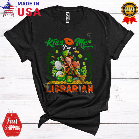 Kiss Me I'm A Librarian Funny Cute St. Patrick's Day Shamrock Irish Leprechaun Librarian Lover T-Shirt