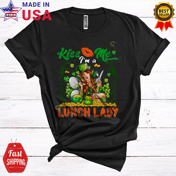 Kiss Me I'm A Lunch Lady Funny Cute St. Patrick's Day Shamrock Irish Leprechaun Lunch Lady Lover T-Shirt