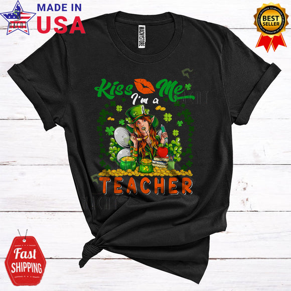 Kiss Me I'm A Teacher Funny Cute St. Patrick's Day Shamrock Irish Leprechaun Teacher Lover T-Shirt