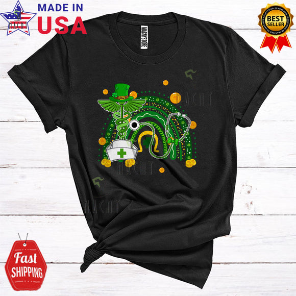 Leprechaun Nurse Tools Funny Happy St. Patrick's Day Gold Coin Irish Shamrock Rainbow Lover T-Shirt