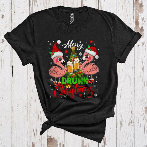 Merry Drunk Christmas Funny Two Santa Flamingo Drinking Beer Bird Animal Lover T-Shirt