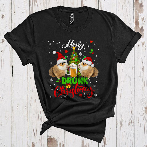 Merry Drunk Christmas Funny Two Santa Guinea Pig Drinking Beer Animal Lover T-Shirt