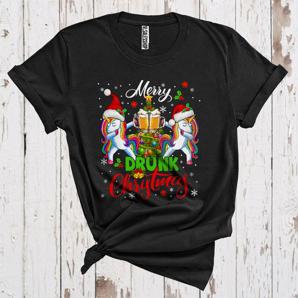 Merry Drunk Christmas Funny Two Santa Unicorn Drinking Beer Magical Animal Lover T-Shirt