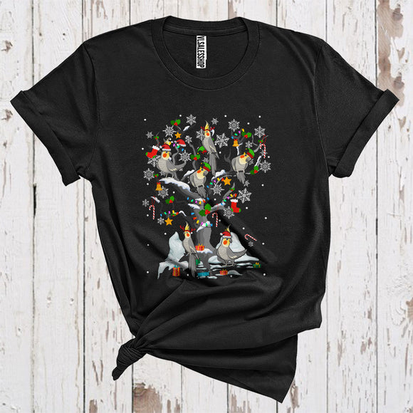 Santa Reindeer ELF Cockatiels Christmas Tree Funny Xmas Lights Bird Lover T-Shirt