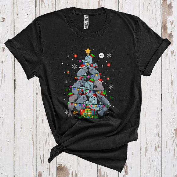 Santa Reindeer ELF Manatees Christmas Tree Funny Xmas Lights Sea Animal Lover T-Shirt