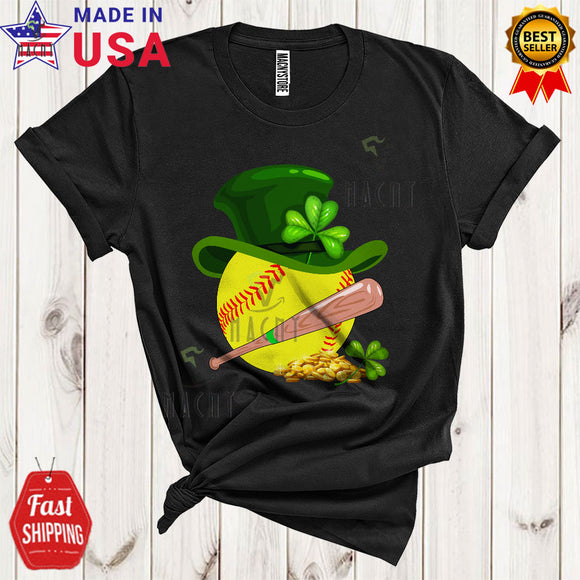 Softball Equipment With Leprechaun Hat Cool Cute St. Patrick's Day Sport Player Playing Team T-Shirt