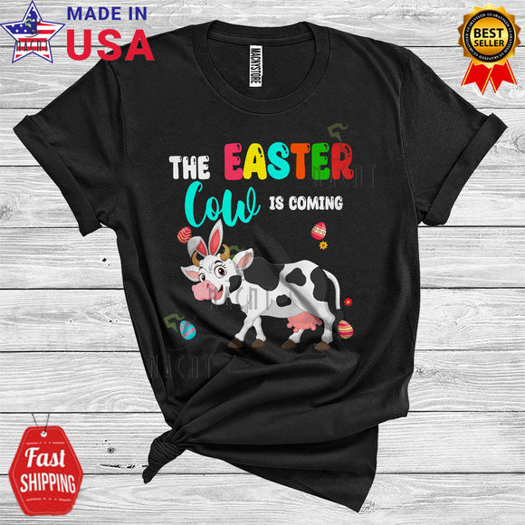 The Easter Bunny Is Coming Cool Cute Easter Day Bunny Cow Hunting Easter Eggs Flowers Farmer T-Shirt