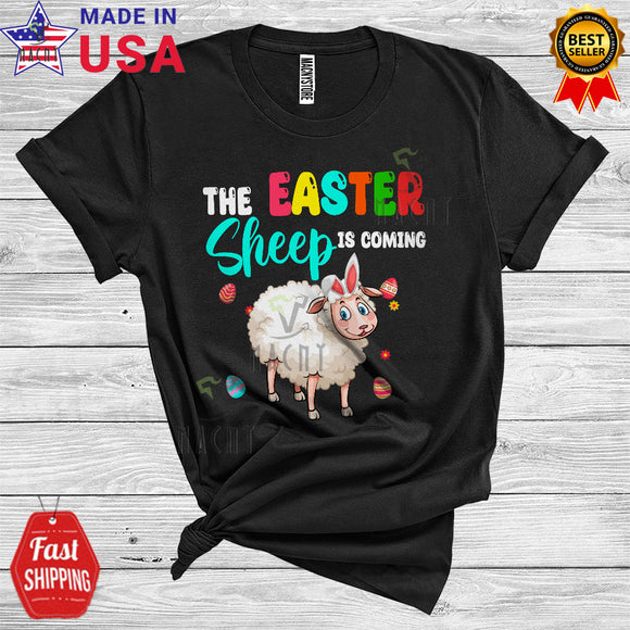 The Easter Bunny Is Coming Cool Cute Easter Day Bunny Sheep Hunting Easter Eggs Flowers Farmer T-Shirt