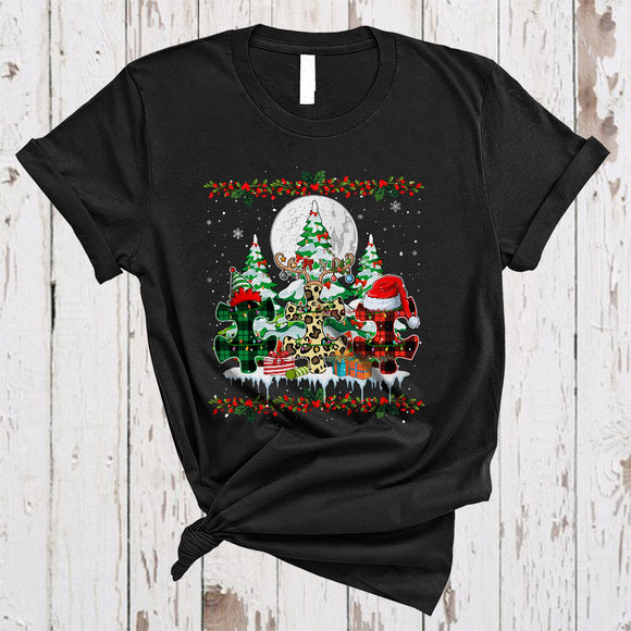 Three Leopard Plaid Puzzle Pieces, Funny Merry Christmas Autism Awareness, X-mas Tree T-Shirt