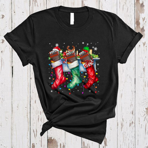 Three Santa Reindeer ELF Accordion In Christmas Socks, Colorful X-mas Music, Family Group T-Shirt