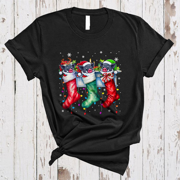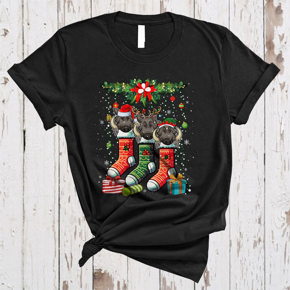 Three Santa Reindeer ELF Boar In Christmas Socks, Colorful X-mas Animal, Family Group T-Shirt