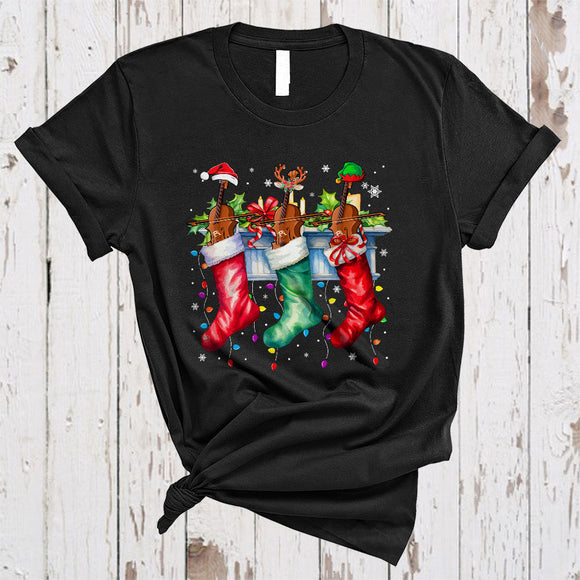 Three Santa Reindeer ELF Cello In Christmas Socks, Colorful X-mas Music, Family Group T-Shirt